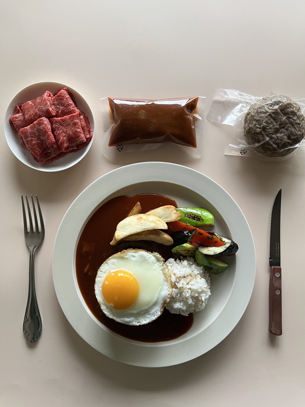4. 데워진 햄버거스테이크위에 소스를 부어 드시면 됩니다